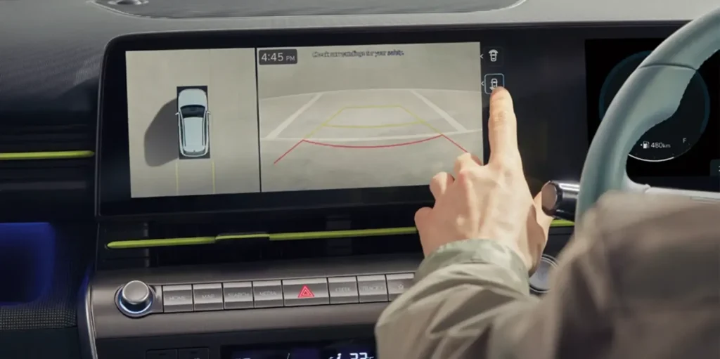 Cámara de reversa dotada de guías dinámicas, para un correcto dimensionamiento del espacio seguro a la hora de parquear. Gracias al modo adicional de visualización que enfoca su vista hacia el piso, podrás ver cualquier obstáculo o peligro que se encuentre en tu camino mientras retrocedes.