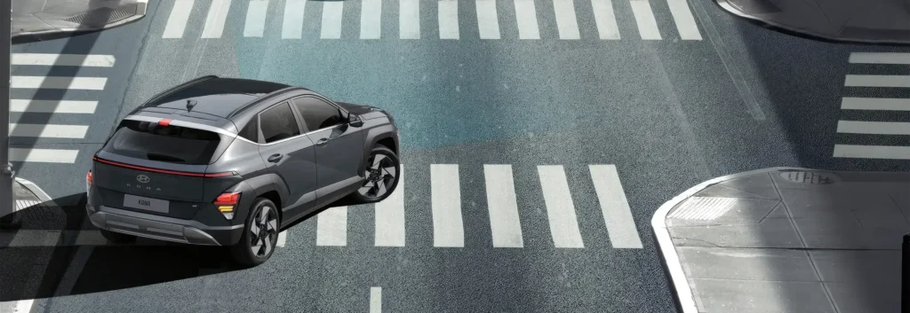 El sistema e-Motion Drive de la nueva Hyundai Kona Híbrida ofrece una mejora en estabilidad y prestaciones de manejo dinámico. Gracias a su avanzado control de tracción, evita situaciones peligrosas causadas por subvirajes durante frenadas en curva.