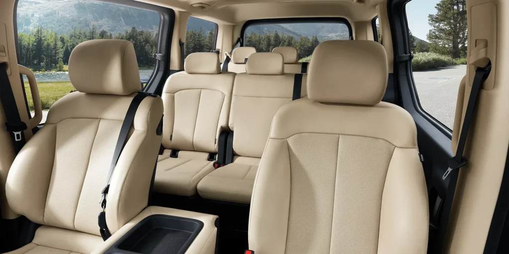 La Staria Pasajeros ofrece asientos largos deslizables, ajustables para mayor espacio y comodidad, adaptándose a las necesidades de los pasajeros o de carga.